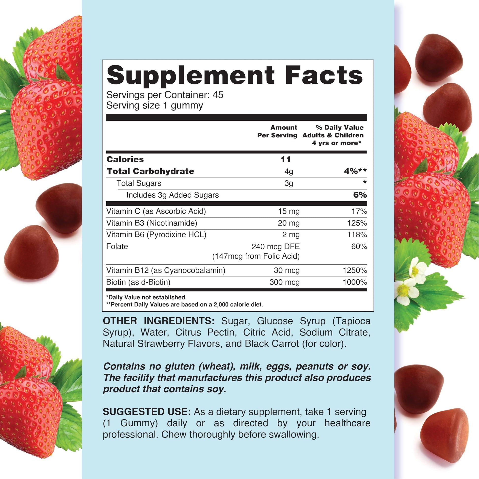 - INCLUDES: 20 mg of Vitamin B3,15 mg of Vitamin C, 2 mg of B6 Vitamins, 300 mcg of Biotin, and 30 mcg of Vitamin B12 in every serving, to make up one supplement that brings you what you need to maintain a healthy lifestyle and ensure that you get the vital nutrients your body needs.