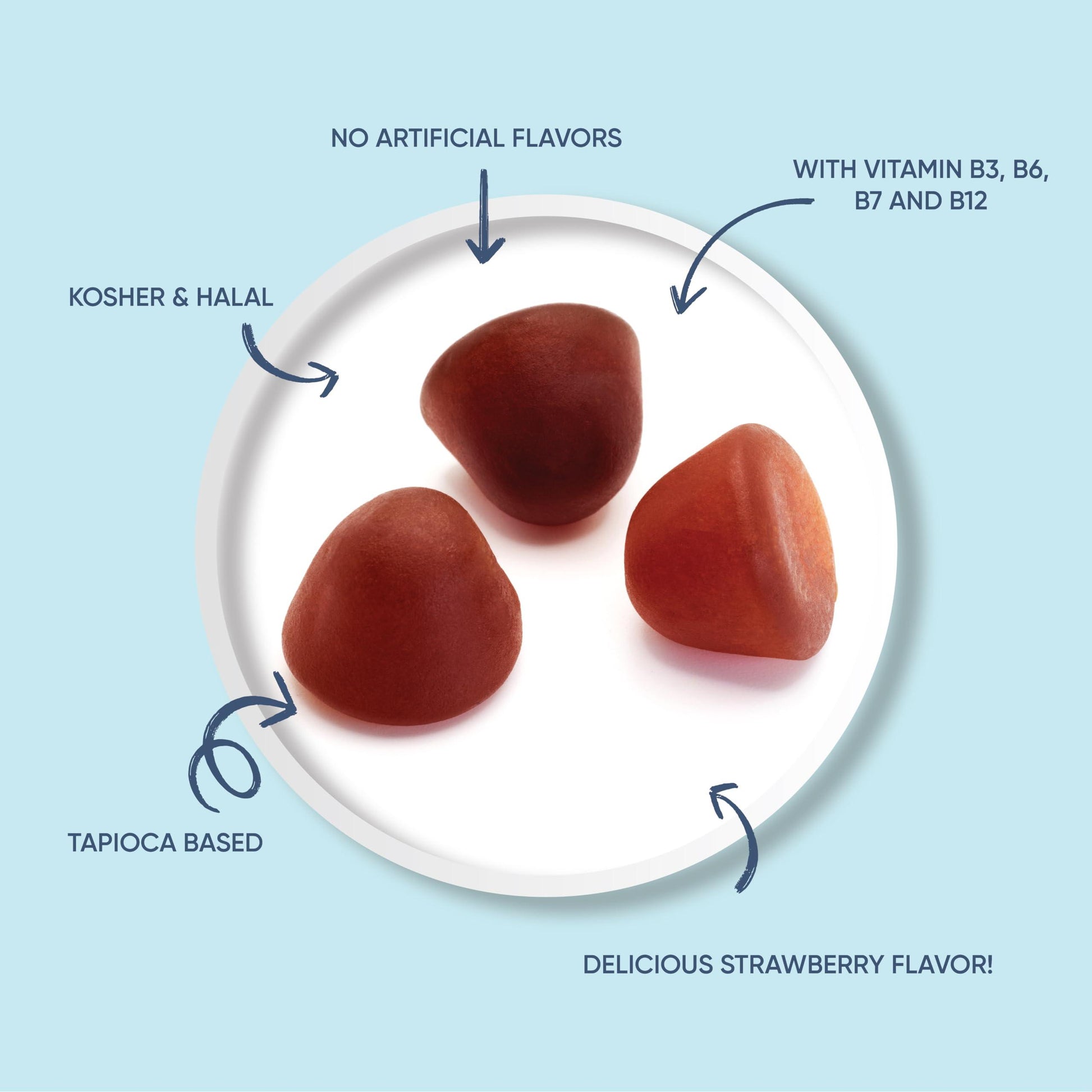 - CONTAINS: 45 Natural Strawberry Flavored, pectin-based, tapioca blended LIVS Energy Vitamin B Complex Gummies for adults, in a non-GMO, Kosher, Halal, Vegan formula, with No Artificial Flavors. Delicious energy gummies at an unbeatable price.