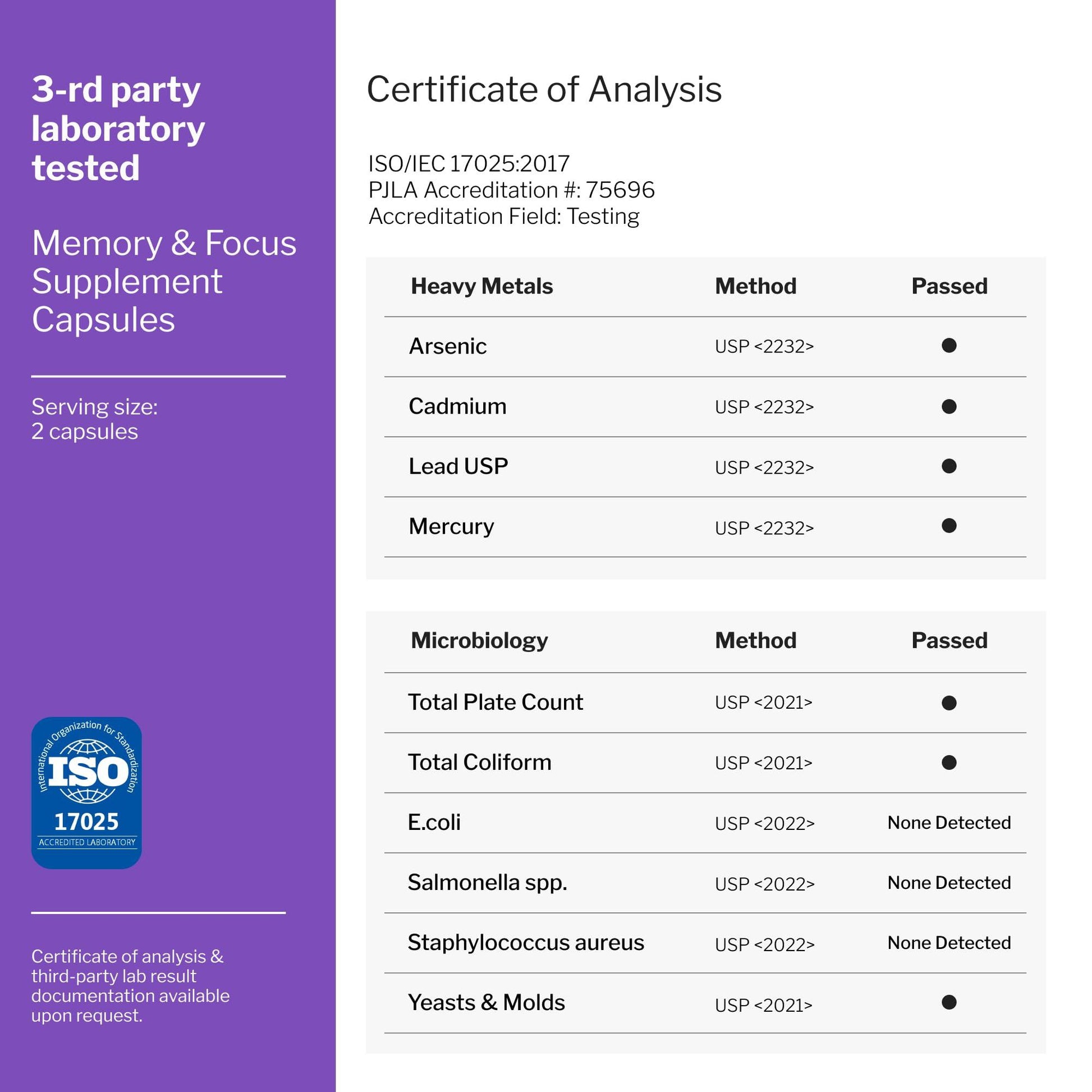FOCUS SUPPLEMENT- GABA supplements made with nootropic Choline Bitartrate, designed as brain supplements for memory and focus. Brain booster supplement unlocks cognitive prowess with Choline supplements. NOOTROPICS BRAIN SUPPORT SUPPLEMENT- Support cognitive prowess with DHA supplements, fortified with Bacopa Monnieri and Huperzine A. This brain booster, amplified by Green Tea Extract, supports your peak memory, clarity, and energy. MEMORY SUPPLEMENT FOR BRAIN- Combine Bacopa Monnieri supplement with phosphatidylcholine for cognitive support. With Huperzine A and phosphatidylserine supplement, this brain pill made with brain support formula supports optimal memory function. ENERGY- These energy pills, acting as a DMAE supplement, are infused with green tea extract boasting 50% EGCG. Made as an energy supplement with DMAE to support men's and women's energy, vitality, and focus! CLARITY - Empower your mind with bacopa monnieri capsules, the brain food for focus support. Support brain function, thanks to our choline supplement. Support brain function perfection, and fuel your healthy brain with the power of focus vitamins and vital brain supplements. FOCUS REDEFINED- These aren't your standard focus gummies; they're infused with a precise measure of CDP choline and GPC choline. Forget the overwhelming doses found in other supplements. Our carefully calibrated CDP choline supplements offer a targeted approach to enhancing focus without overstimulation. MEMORY ENHANCEMENT, GENTLY DONE- Our blend goes beyond the usual Bacopa Monnieri powder with Huperzine A. Skip the high-dose Choline Bitartrate powder. This isn't about overwhelming your system with choline bitartrate powder but nurturing it with the perfect sprinkle of CDP choline powder for lasting memory support. MENTAL AGILITY WITH CARE- Ditch the high-dose phosphatidylserine and GABA supplements. Our blend offers a fine-tuned dose of green tea leaves extract and choline inositol, providing the mental agility benefits you want without unnecessary extras. It's about enhancing your cognitive function with care, not overwhelming it. CLARITY WITHOUT THE OVERLOAD- Step away from the intense GABA powder and green tea oil mixes. Our formula provides a serene clarity with a moderate dose of GABA, paired with the subtle influence of green tea. It's the perfect blend for those seeking mental clarity without the high-dose approach. HOLISTIC BRAIN HEALTH, SIMPLIFIED- Forget about the all-too-common high doses of Huperzine A and GABA 750mg in today's market. Our product is designed to provide comprehensive support through carefully selected ingredients, ensuring your brain receives the gentle care it deserves without the harshness of high doses.