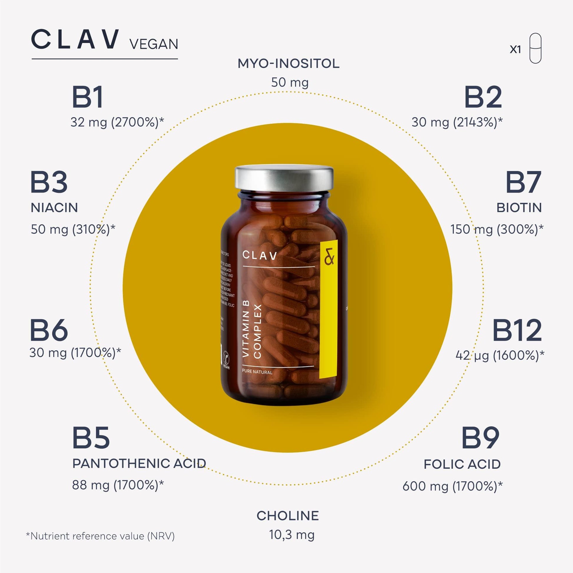 Vitamin B Complex 120 Capsules All 8 B Vitamins with Co Factors Myo Inositol & Choline Supports Energy Metabolism Vegan Made in Germany