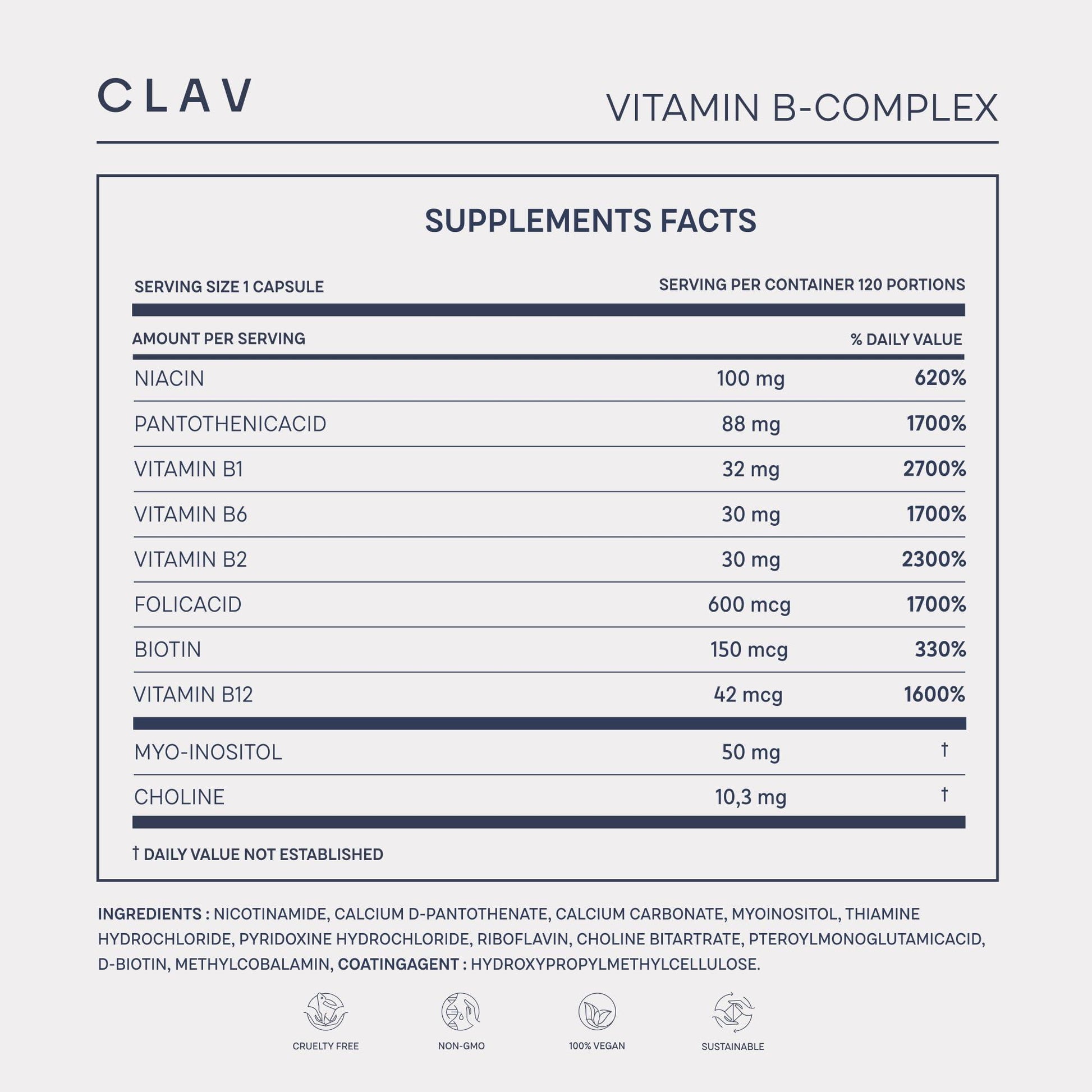 B Complex Vitamin Supplement - Our well balanced Vitamin B Complex incudes all B Vitamins. Vitamin B 12 is available as its bioactive form Methylcobalamin B12. We also added the cofactors Inositol and Choline for maximal bioavailability.