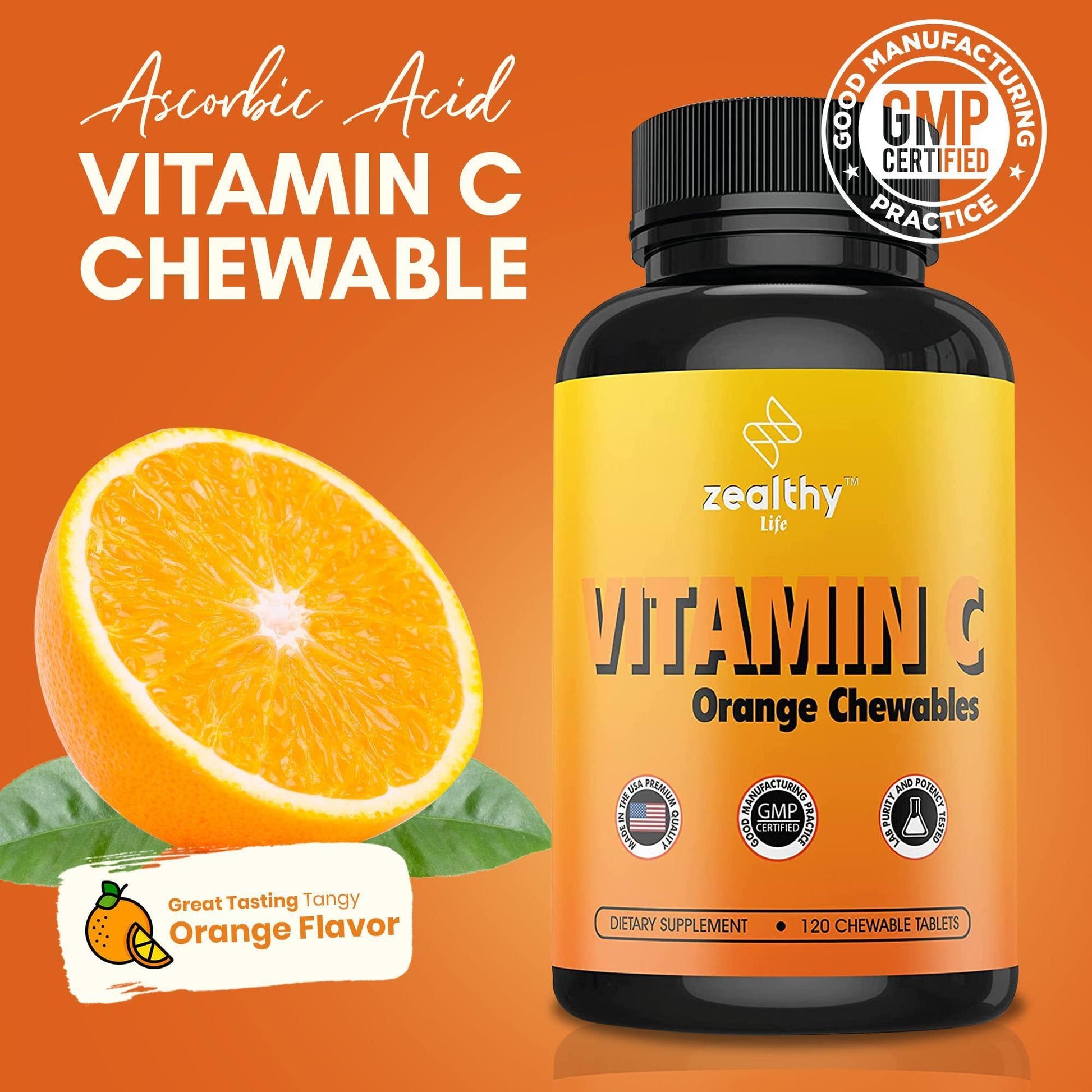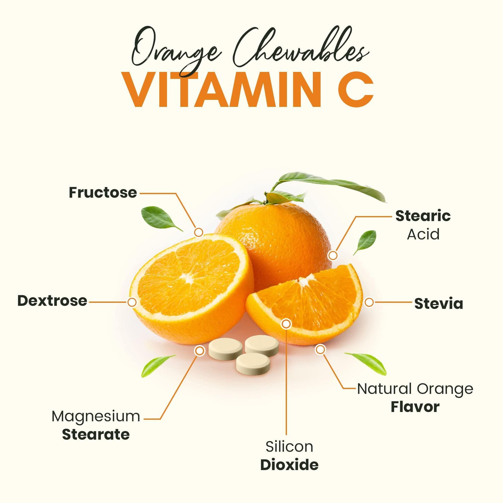 Vitamin C 500mg Orange Vitamin C Chewable Immune Support Supplement with Antioxidants Alternative to Immune Support Gummies